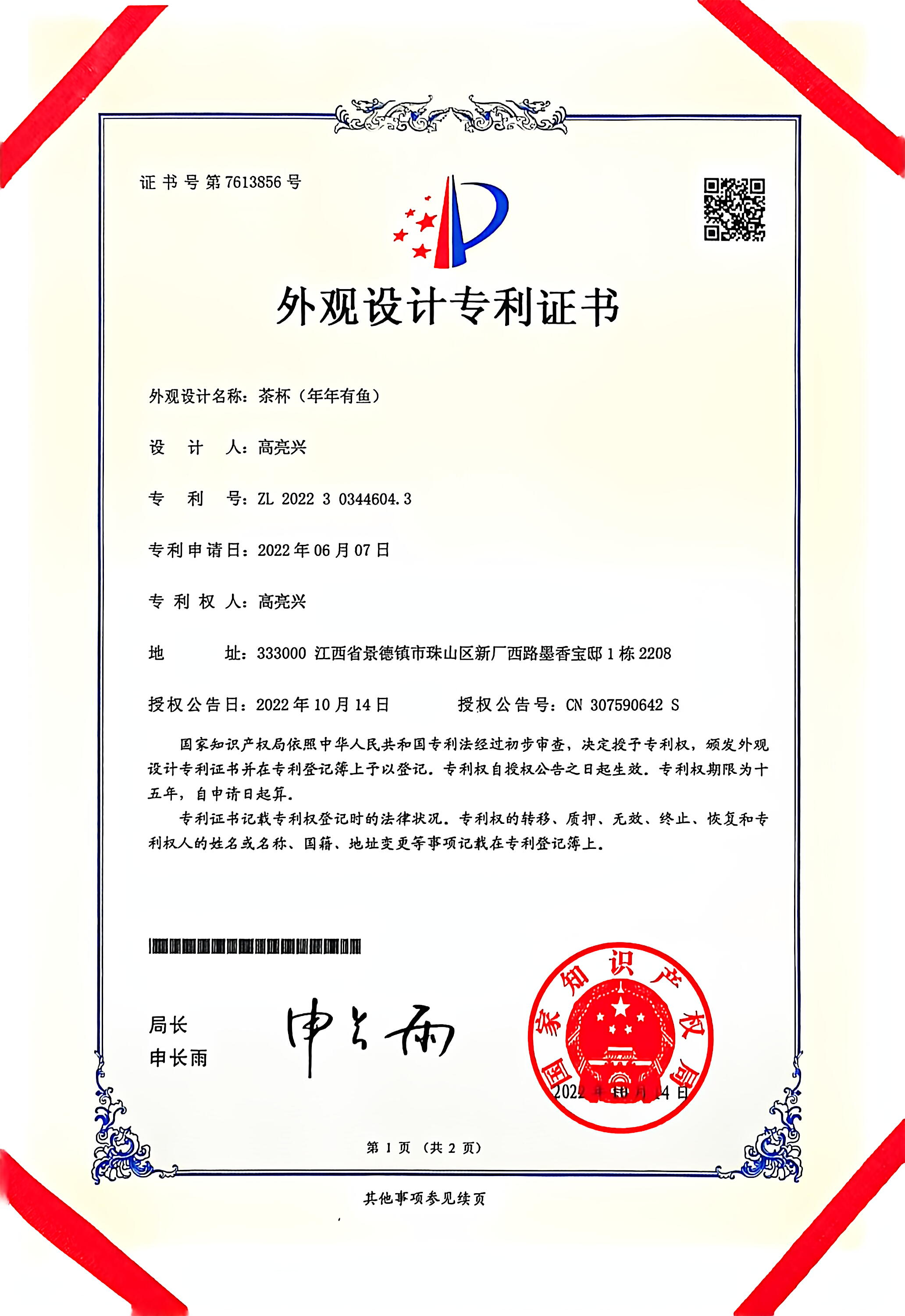 2022年获得两项外观设计专利。